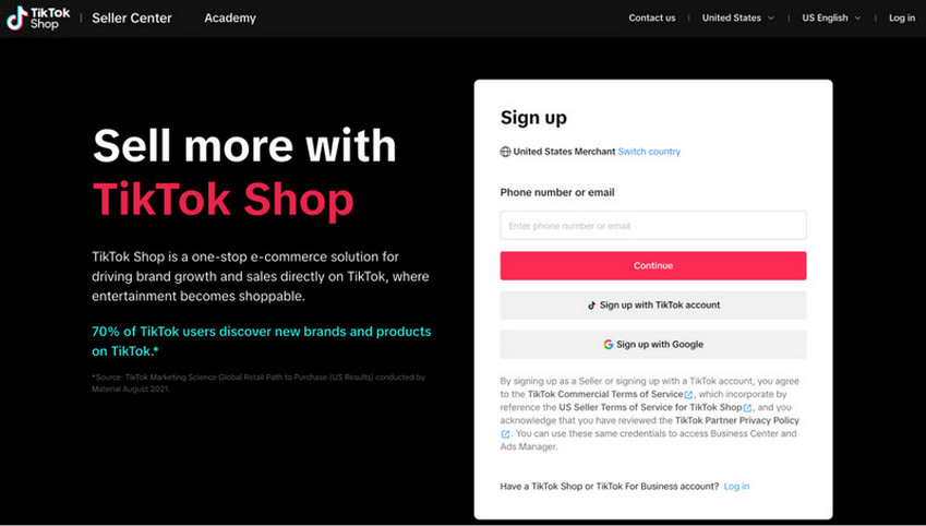 Register at TikTok Shop Seller Center. Choose your country and provide basic business information. -